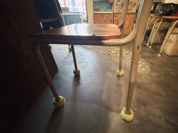 教室でよく見かけた、椅子の足が床を傷付けないようにテニスボールを装着しているやつ。