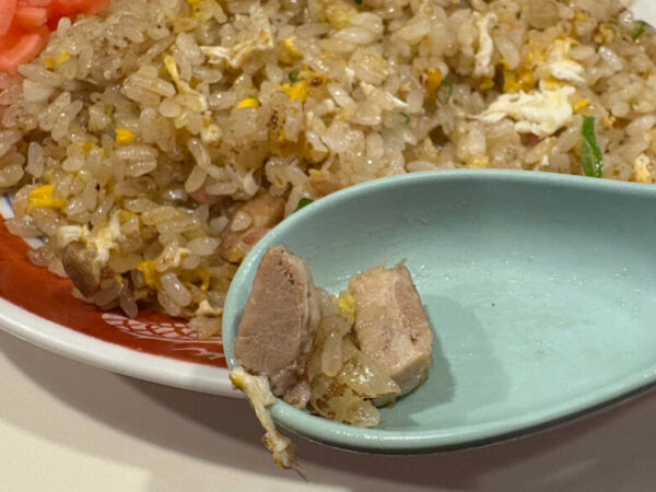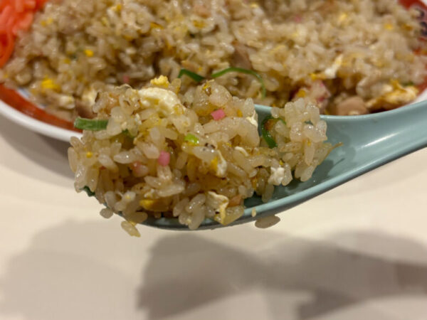パラパラ系の焼きめしで、卵は単体でしっかりと火が通してあるタイプ。