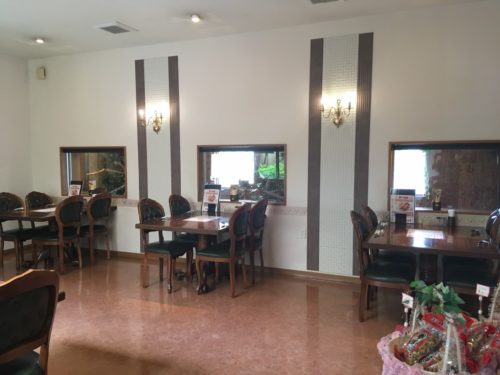 中庭に面した窓沿いの席もあり、間近でリスを見ながら食事ができます。