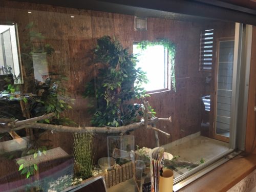 さらに、店内にも広いリス小屋があり、その前にテーブルが設置されています。