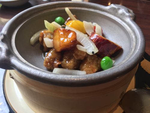 酢豚は、さつま芋やミニトマトが入った変わった酢豚。お芋がおいしくて特にハマりました!