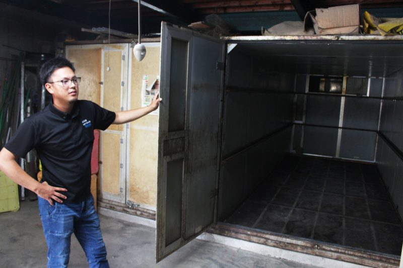 葉たばこを乾燥させるための倉庫。今から入れるので中は空っぽですが、結構広い