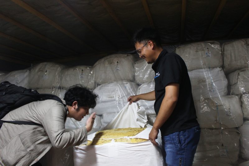 続いて見せてもらったのが、出荷待ちの葉たばこたちが保管してある倉庫。
