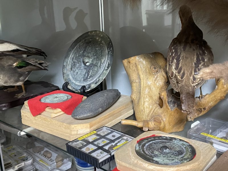 西南戦争の話はここまでで、次は太古の昔に作られた銅鏡を見せてもらいました。
