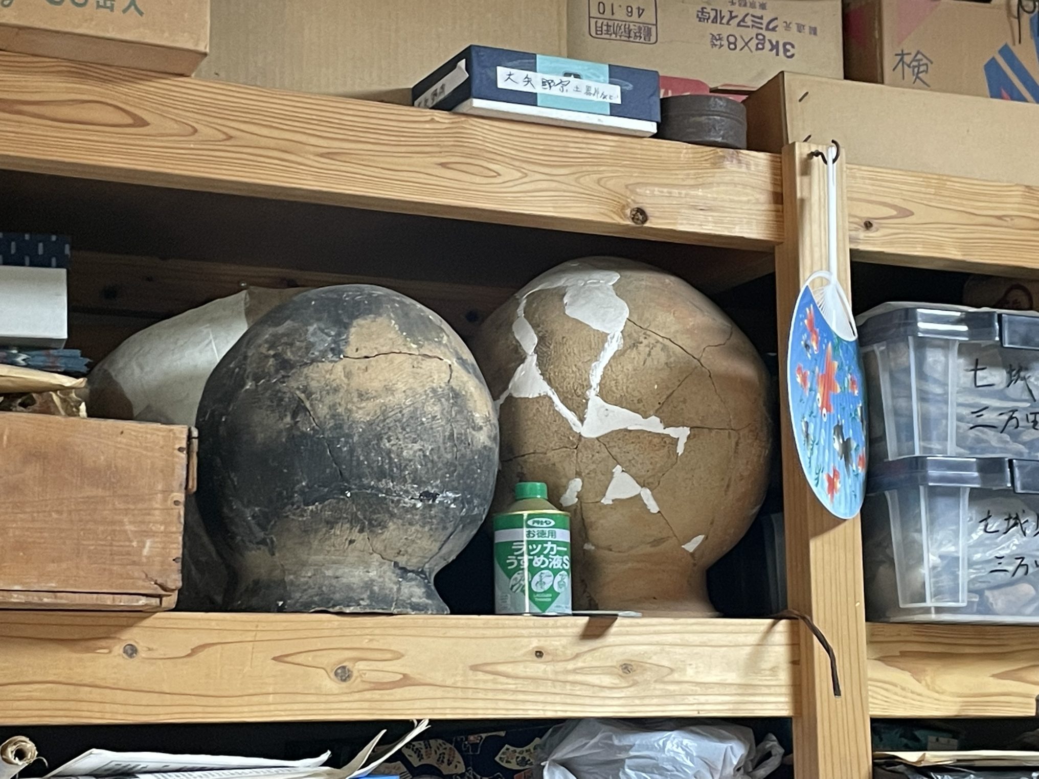 こちらは弥生式土器。ラッカーうすめ液は現代のものです。