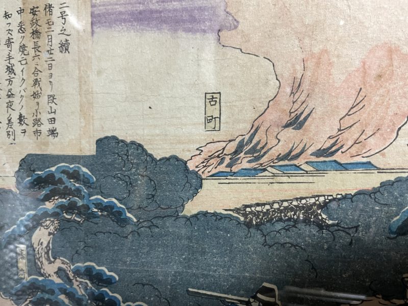 古町と書いてある(現在の新町)ところから煙が。段山での戦闘を描いたものですね。