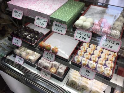 店頭には、いちご大福にどら焼き、もなかといった和菓子の定番をはじめ、見た目が綺麗な上生菓子等が並べられており見た目もとても美味しそうです。