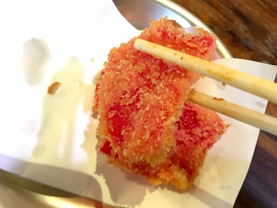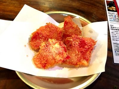 ラーメンとは違いますが、お店の方にオススメいただいたサイドメニューが「紅生姜のフライ」!