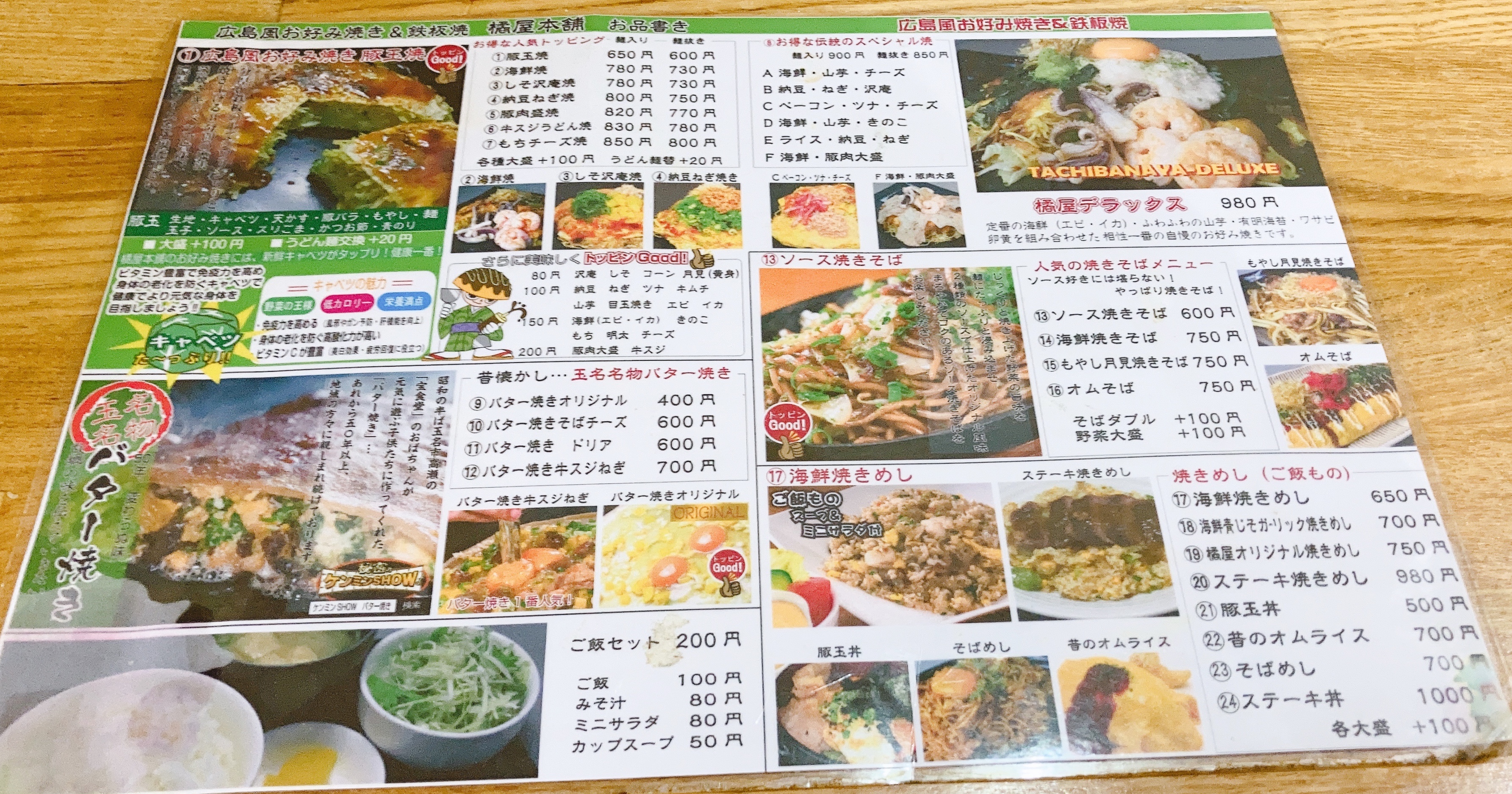 早速メニューを見てみます。お好み焼きは広島風なんですね。焼きそばに焼きめしに…バター焼きなど色々あります。