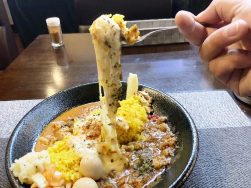 その名も「ギャングカレー」三年坂「Ritz Cafe」で濃厚バターチキンと軟骨たっぷりキーマの2種を合掛けでチーズ乗せて