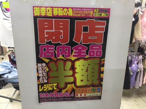 ハゼヤマ御幸店が9月1日閉店のため半額セール中!冬頃にコジマ×ビッグカメラ2階に移転オープン予定