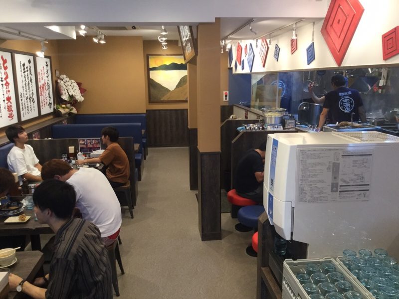 店内はテーブル席にカウンター。郊外店と比較すると席数は少なめですが街中のラーメン屋さんなら十分!