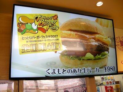 阿蘇くまもと空港のフードコートにある「キッチン空福亭」。ボリューム満点の「あか牛ハンバーガー」が人気ですが、新商品「太平燕バーガー」が登場!