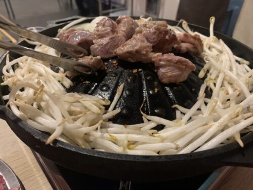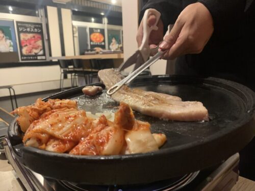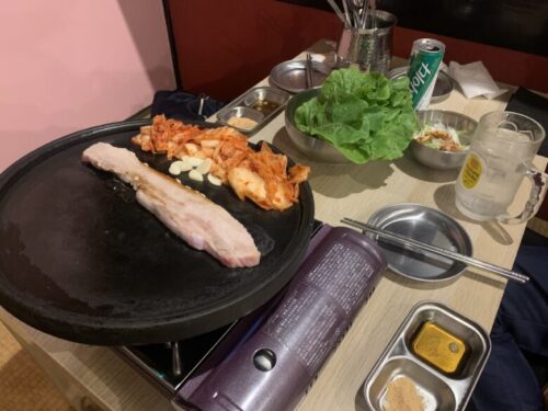 店員さんが焼き加減をみてカットしてくださるので、初めてのサムギョプサルでも安心です。