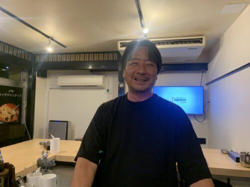 こちらが店長の烏川(ウカワ)さん。14年前に保田窪に韓国十八番食堂をオープン。その後並木坂に2号店を出店。この3号店は「大衆たれ食堂十八番」と、新しい名前で2年前に水前寺にオープンしました。