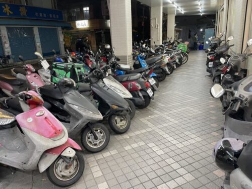 歩道には、ズラァっとバイクが並んでます。駐輪場の中を延々歩いてる感じです。