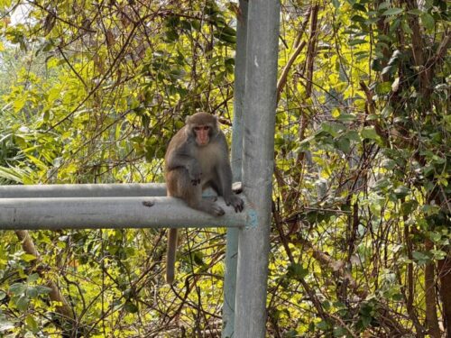 道端にサル。