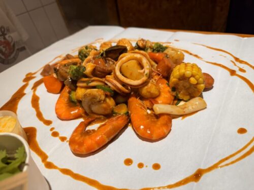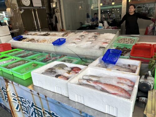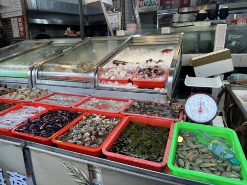 一見すると魚屋さんのようですが、ここで「これを焼いて欲しい」「蒸して欲しい」とオーダーし、中でいただくスタイルです。