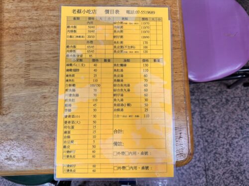 テーブルに注文票があるので、そこにチェックをいれて店員さんに渡すスタイルでした。