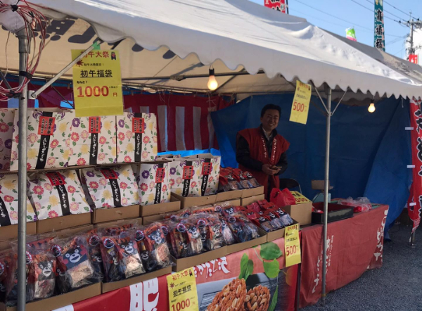 お菓子の香梅の初午招福餅、岩田コーポレーションの初午福袋など、熊本の企業が集まって初午にちなんだ商品を販売。