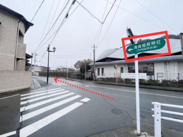 【高橋稲荷神社】の看板。この道を真っすぐ進みましょう。