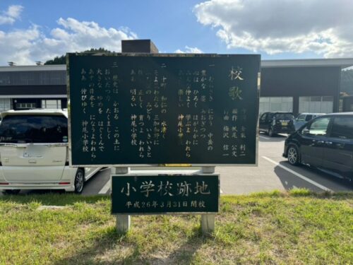 お地蔵さんの前には「小学校跡地」と「校歌」が。こちらは和水町立神尾小学校跡との事でした。少し前までは子供たちを見守っていたことでしょう。