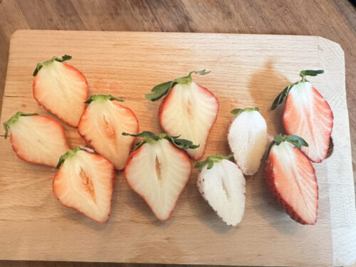 でもね、見てわかるように「リンタロウイチゴ」が中まで赤いんです。