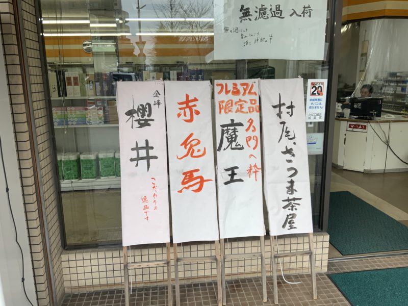 この酒屋さんの何がすごいかって言うと、品揃え。とくに人気のあのお酒。もうちらっと立て看板見えてますけど、