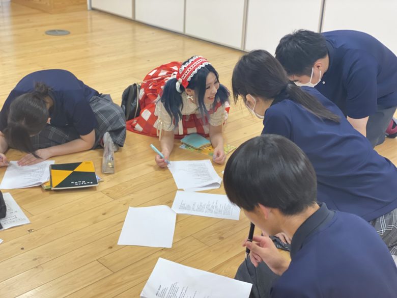 2チームに分かれ、それぞれお面を作る制作班になるのか、演者になるのかを話し合い担当を決めていきます。