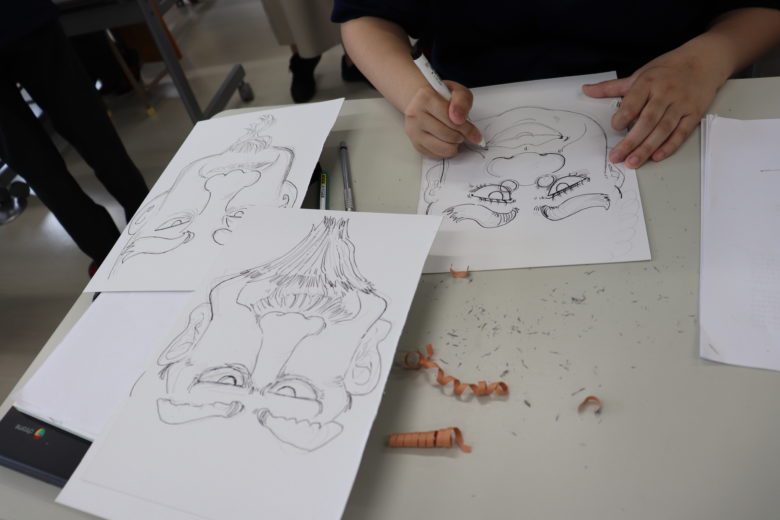 堀江社長から渡されたのはまだ文字だけの状態なので、内容を読み理解し、自分が思うキャラクターをそれぞれ描いていきます。