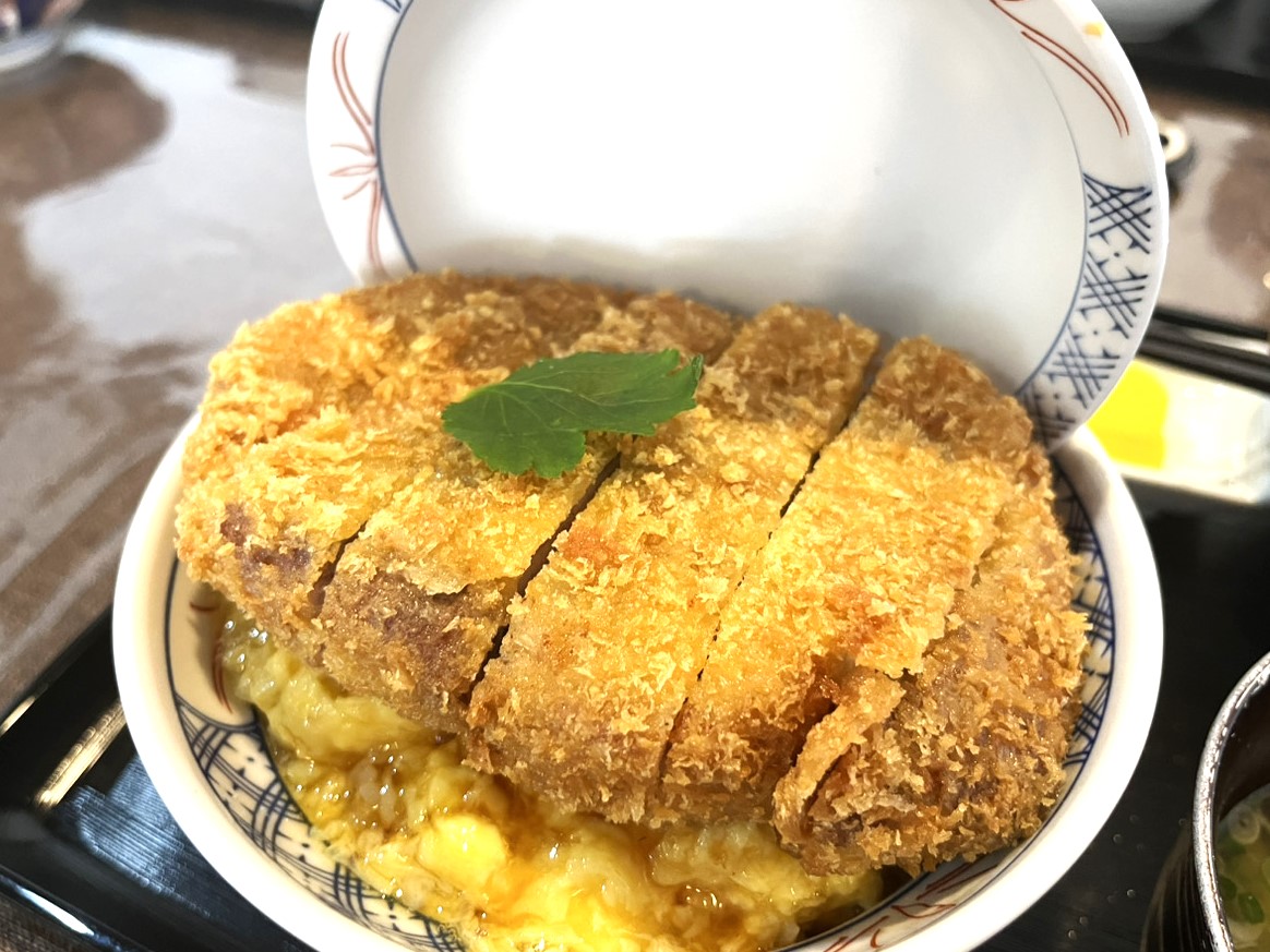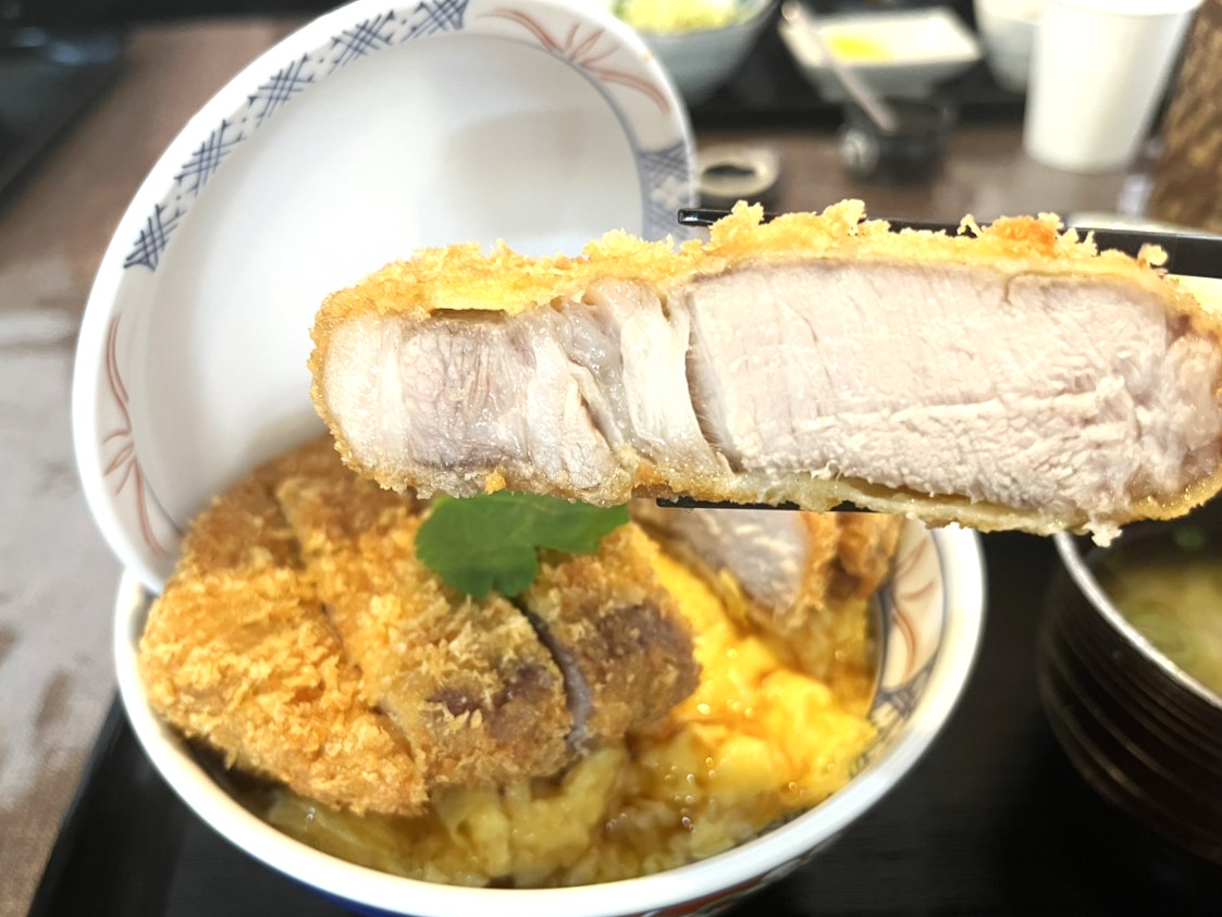 分かりますか?大きさもさることながら、とんでもなく厚いんです。こんな厚いカツ丼は初めて。