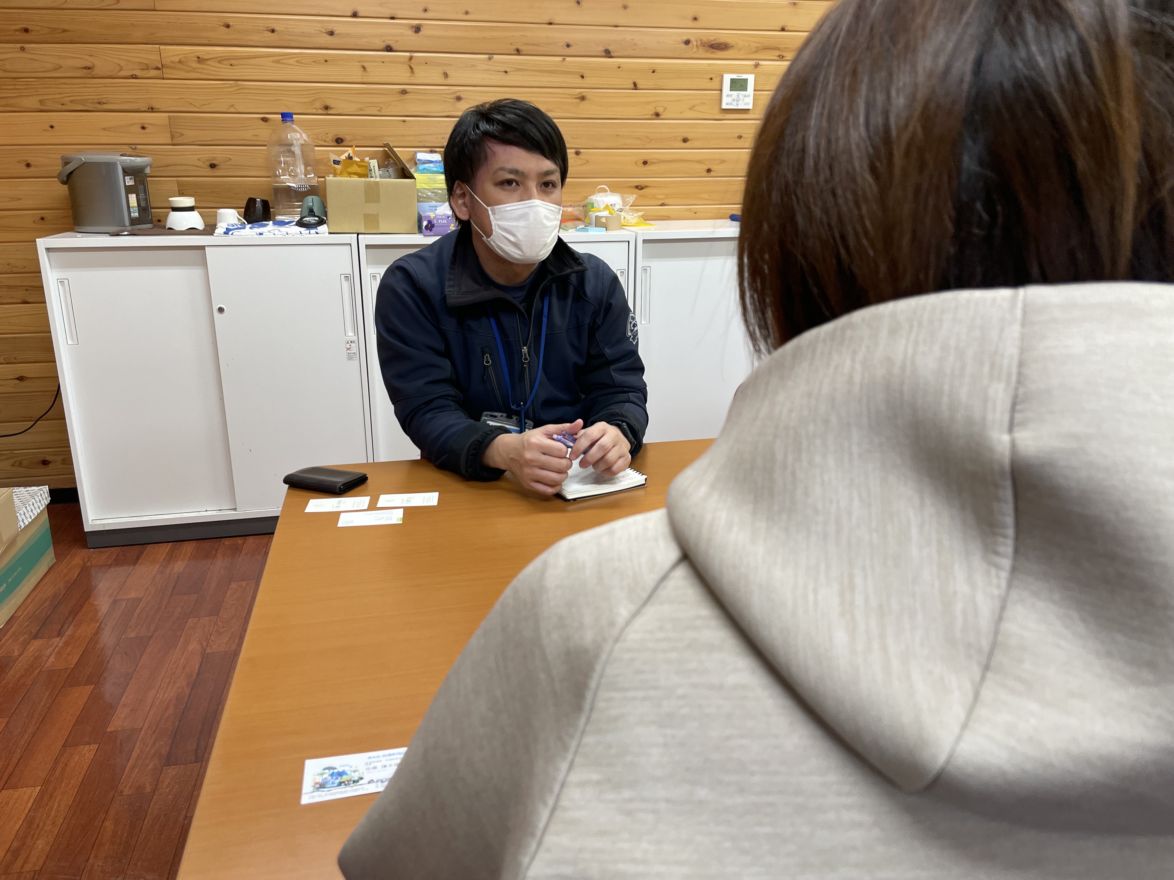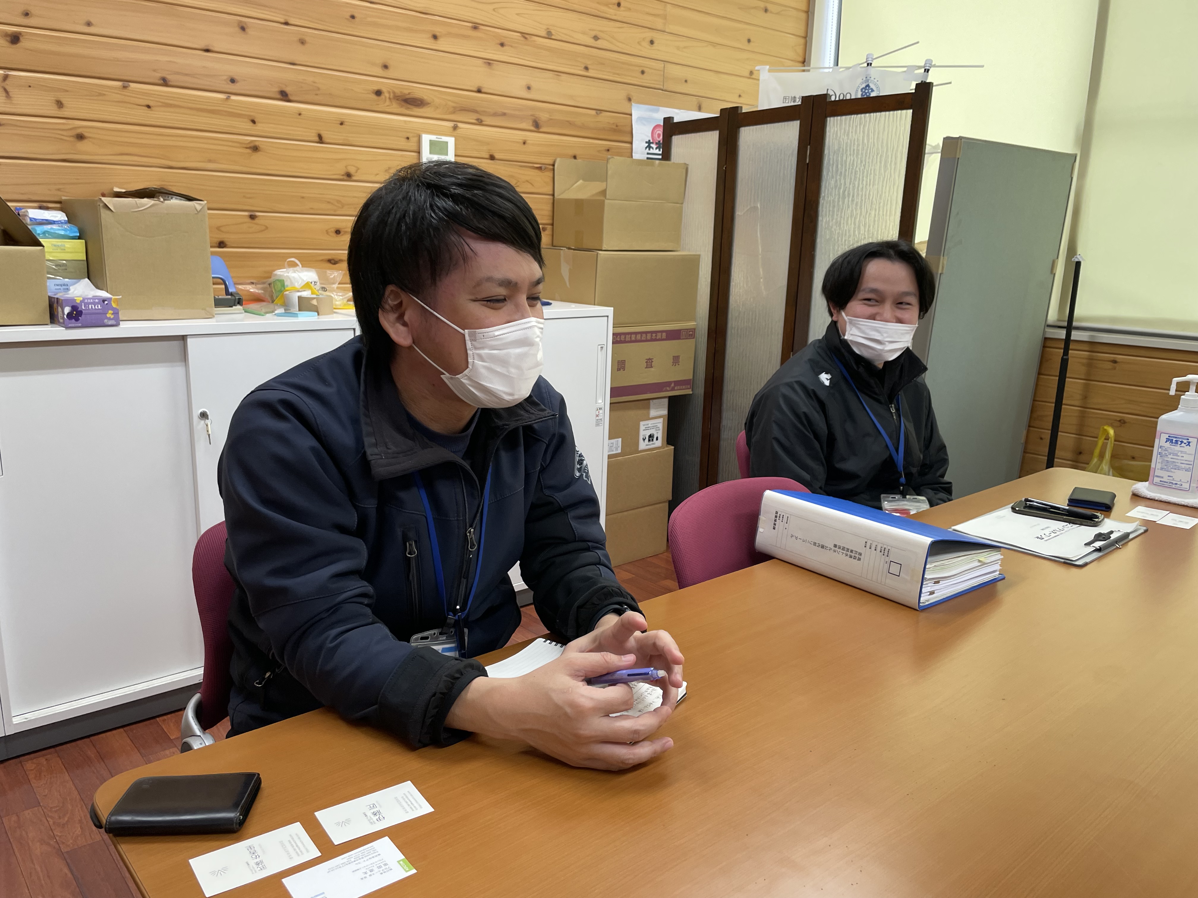 「どうしてどうして」を対応される高森町役場 交通政策係 佐藤さん(左) 商工観光係 村上さん(右)