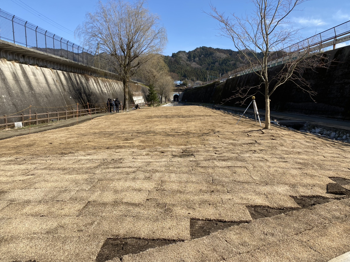 「また湧水トンネルは入り口にあった池や噴水を撤去し芝生を敷き広場を新しく作るなど行っております」