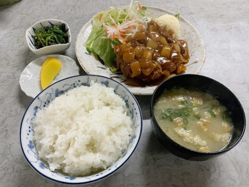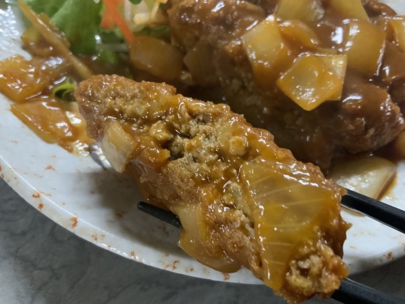 肉汁あふれるミンチカツに、濃厚なのにくどくないソースがマッチしていて、ご飯が進む進む。