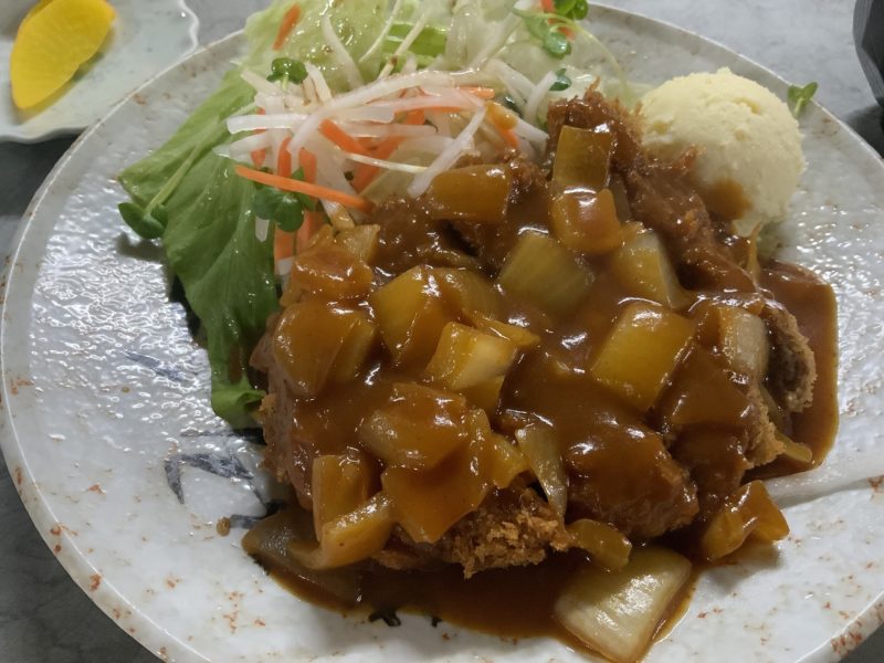 最初、あんかけかな?と思う見た目でしたが、本当にデミグラス。大きな玉ねぎがたっぷりはいっています。