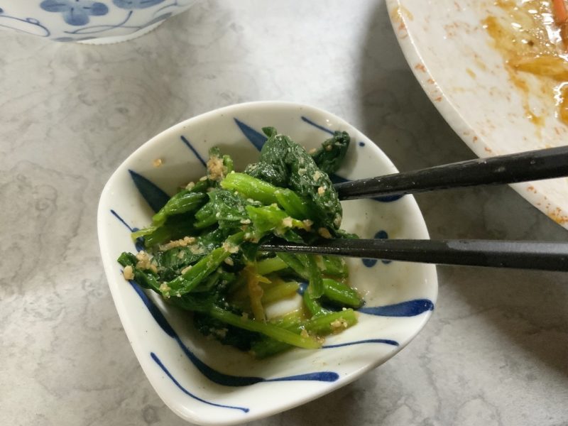 小鉢のほうれん草の胡麻和えもめっちゃ美味い。一口含んだ瞬間「あ、これおふくろの味や」と何故か懐かしい気持ちになりました。