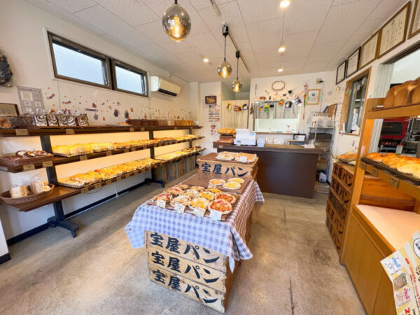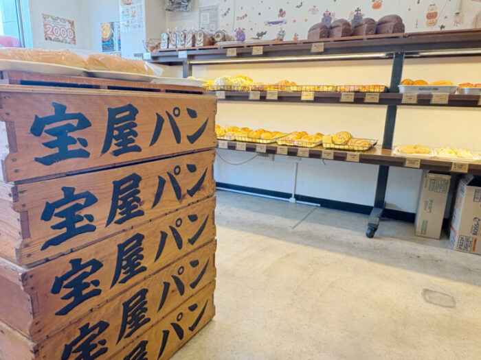 店内に入るとふわっと小麦の香りがやってきます。【宝屋パン】と書かれたケースがレトロで歴史を物語っているかのよう。