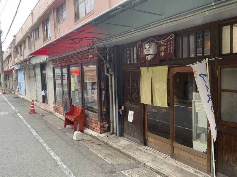 今回お目当ての「高砂や」は河原町繊維問屋街の向かい側、翁の面が飾ってあるもなか屋さんです。