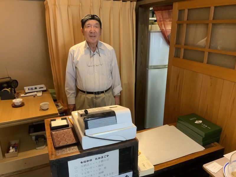 店主の中村さん。普段はもなか屋さんですが、本業は能で、金春流肥後中村家の十三代目。人柄もよくとても話しやすい方でした。
