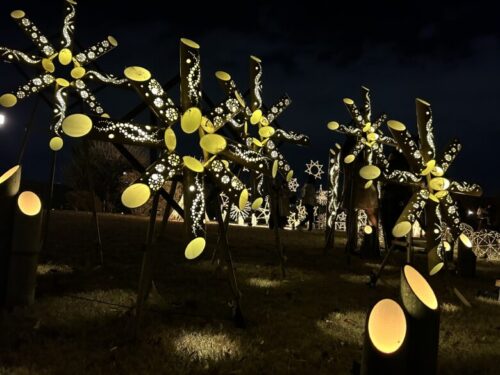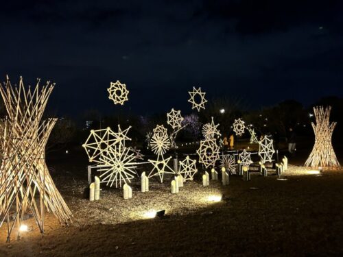 庭園の木々とのコラボも、細かい細工が美しい竹あかりも両方楽しめました。