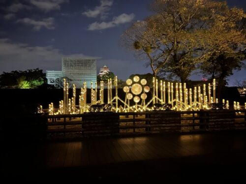 ライトアップや竹あかりにより幻想的になった夜の熊本城界隈、ぜひ楽しんでみてくださいね〜!