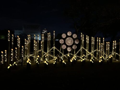二の丸広場では、熊本城を背景に竹あかりのオブジェが登場!