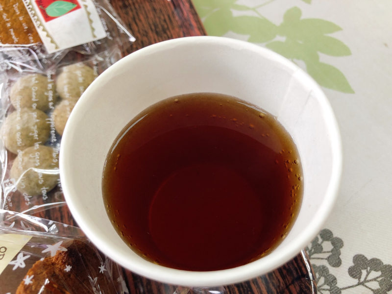 まずは、紅茶を一口。普通の紅茶と比べて渋みとクセが少なく、苦みもほとんどありません!ずっと飲んでいても、飽きないような味わいです!紅茶が苦手な人でも飲めるっていうのが何となくわかります!