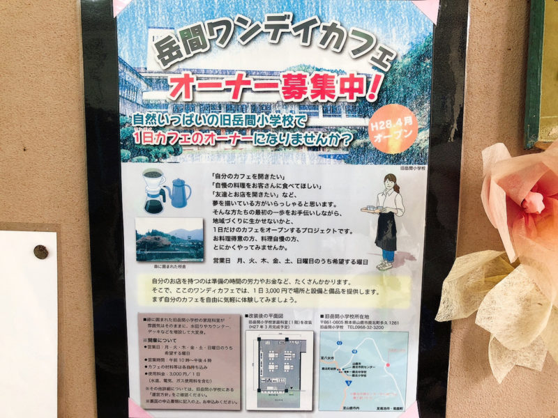 ほっと岳間では、料理教室やマルシェ等さまざまなイベントをしているそうです!さらに、今回鹿本農業高校の高校生が使用していた一日だけ営業できる「ワンデーカフェ」という取り組みは実は誰でも1日3000円で利用できるそうです!詳しくはこちらから!