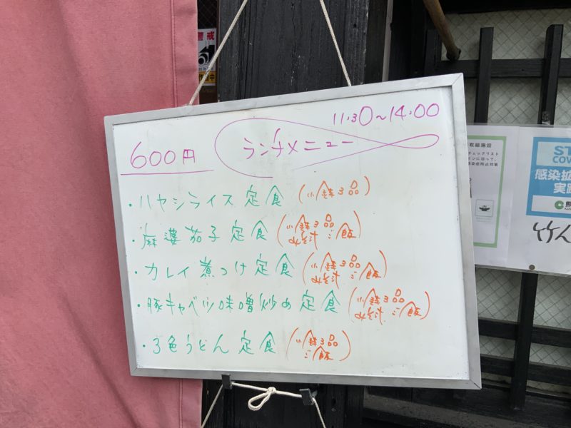 入り口に、その日のランチメニューが掲げられています。