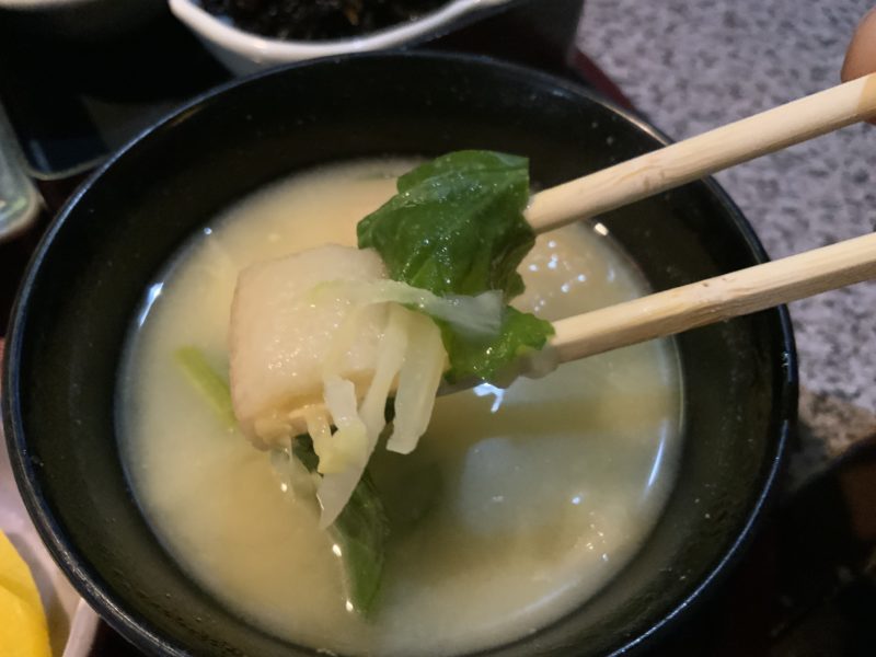 お味噌汁もお麩はでっかいし、野菜もたっぷりで美味。毎日食べたい味噌汁です。