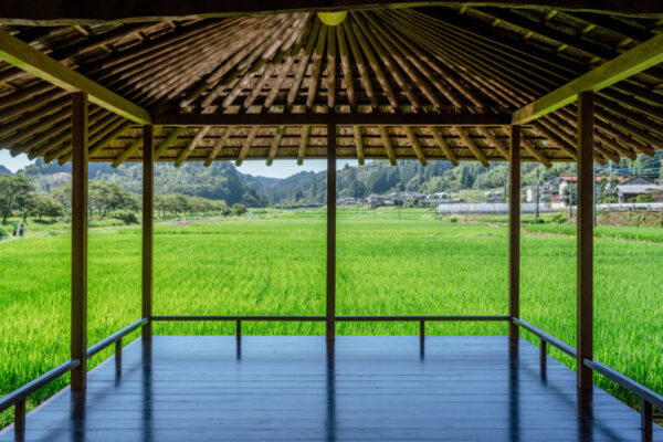 南小国の田園風景、小国杉を使った建物、地域の食材を使ったお料理と飲み物。全身で南小国の自然を感じられる場所、「喫茶 竹の熊」。