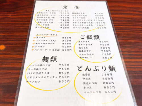 定番かつ間違いない定食ラインナップ。そして、丼ものから麺まで。
