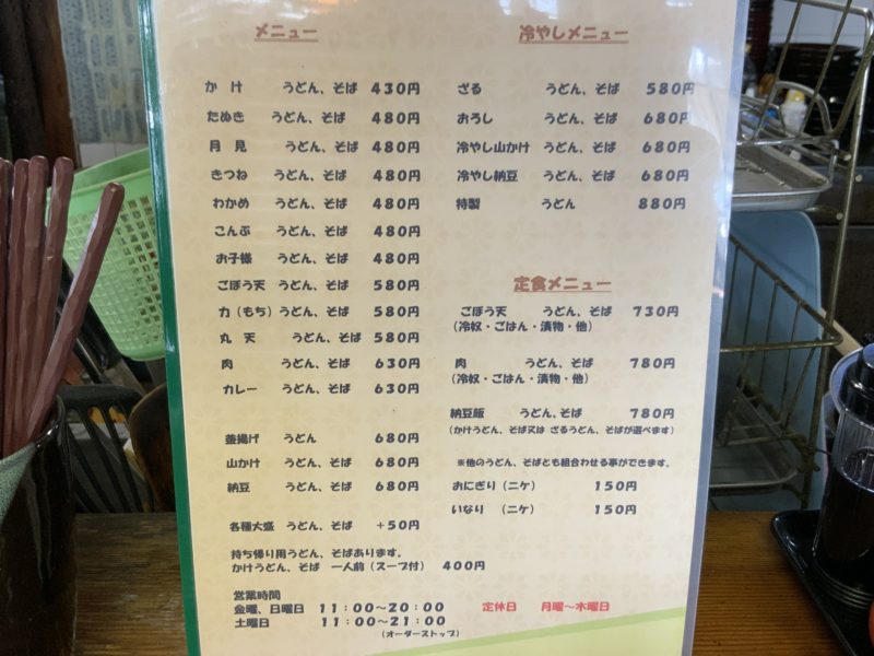 うどん、そばで、種類も豊富。温かいうどんも美味しそうですが、今回はさっぱり冷たいうどんにしたいと思います!