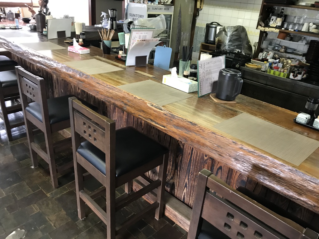趣ある木製のカウンター。「ザ・うどん屋」という感じです。